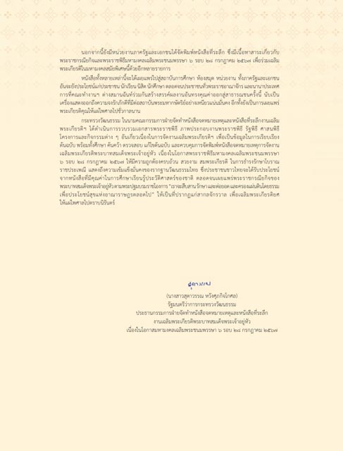 กระทรวงวัฒนธีรรม ในนามคณ์ะกรรมการฝ่่ายจัด็ทำหันังสั่อจด็หัมายเหัตุแลัะหันังสั่อที�ระลัึกงานเฉลัิม